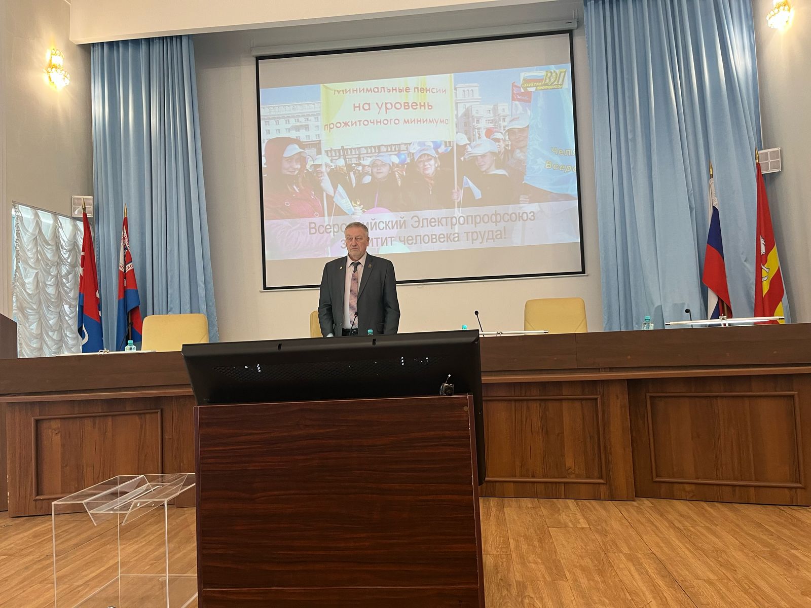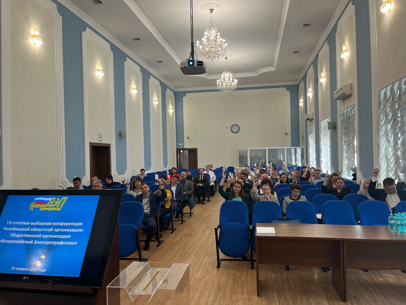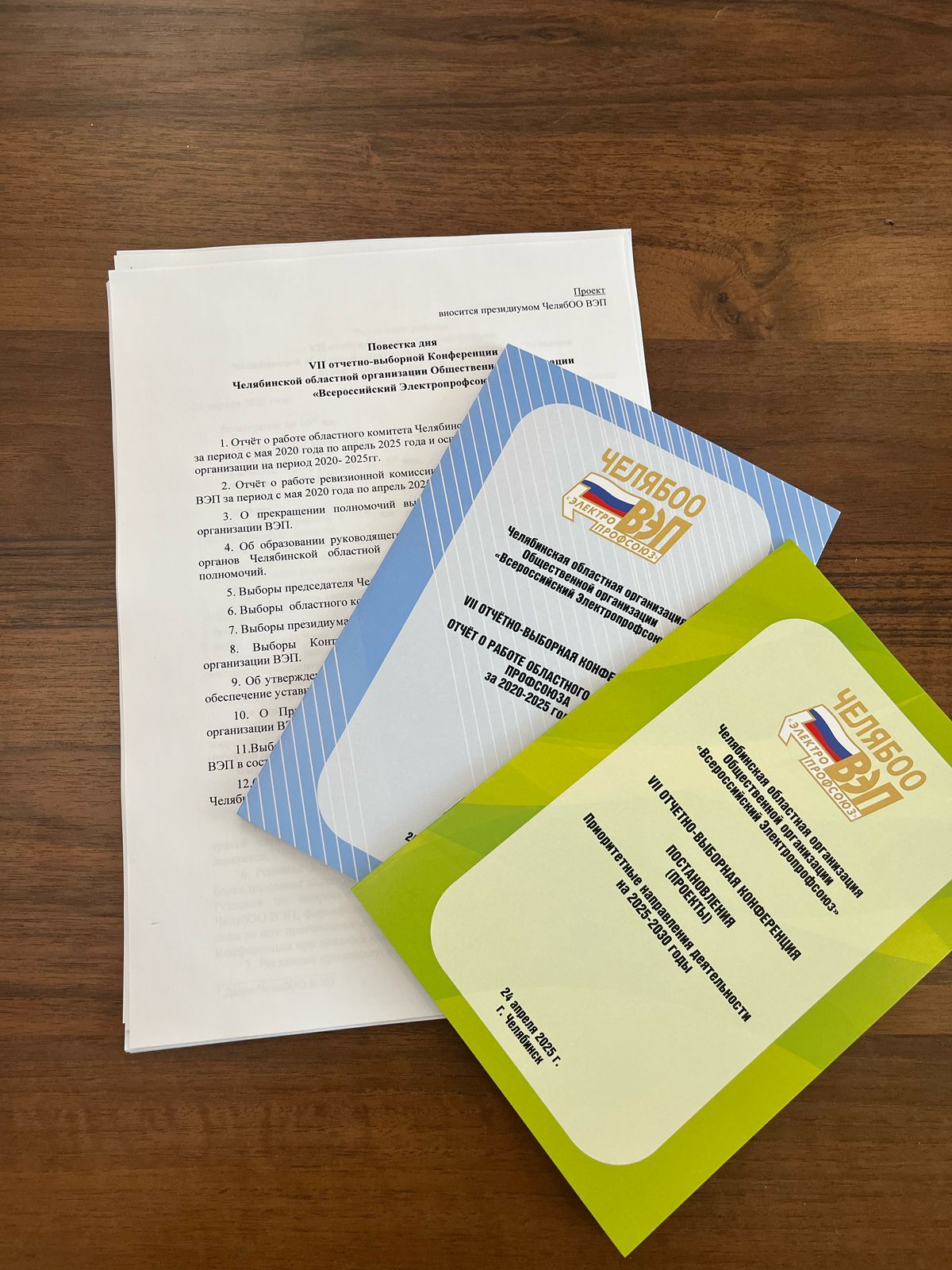 24 апреля состоялась VII очередная отчётно-выборная конференция Челябинской областной организации отраслевого Профсоюза. На конференции присутствовали 46 делегатов, представляющих все первичные профсоюзные организации территориальной структуры Всероссийского Электропрофсоюза. В процессе регистрации непосредственно перед началом конференции делегатам выдавался набор участника, включавший в себя в том числе качественно подготовленный и стильно оформленный комплект проектов документов, которые предстояло обсудить и принять соответствующие решения.