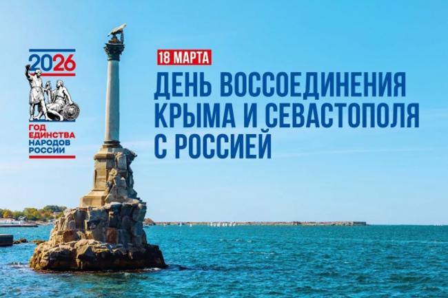 18 марта 2026 года отмечается годовщина воссоединения Крыма и Севастополя с Россией. 12 лет назад крымчане на референдуме по вопросу о статусе полуострова Крым и города Севастополь сделали свой судьбоносный выбор. 18 марта 2014 года, основываясь на свободном и добровольном волеизъявлении жителей Крыма и города Севастополя о воссоединении с Россией, в Кремле был подписан Договор о вхождении Республики Крым и города Севастополь в состав Российской Федерации. «Крымская весна» стала символом единения многонационального народа, а Республика Крым и Севастополь вновь стали частью Российской Федерации.