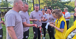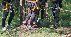 С туристической полосой препятствий нашей команде не повезло. На одном из этапов запуталась верёвка, и драгоценное время было упущено. Спортивным туризмом практически никто из рязанской дружины ранее не занимался. До поездки на Байкал было проведено всего пару тренировок. Этого хватило, чтобы освоить элементы, но скорость прохождения трассы оставляла желать лучшего.