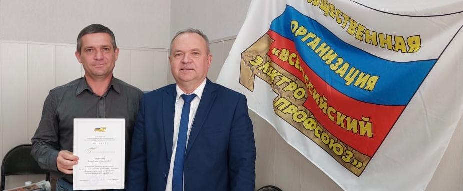 Благодарность Президиума ВЭП за активное участие в конкурсе и большой вклад в профсоюзную деятельность вручена председателю ППО Левобережного ВЭП Вячеславу Смирнягину.