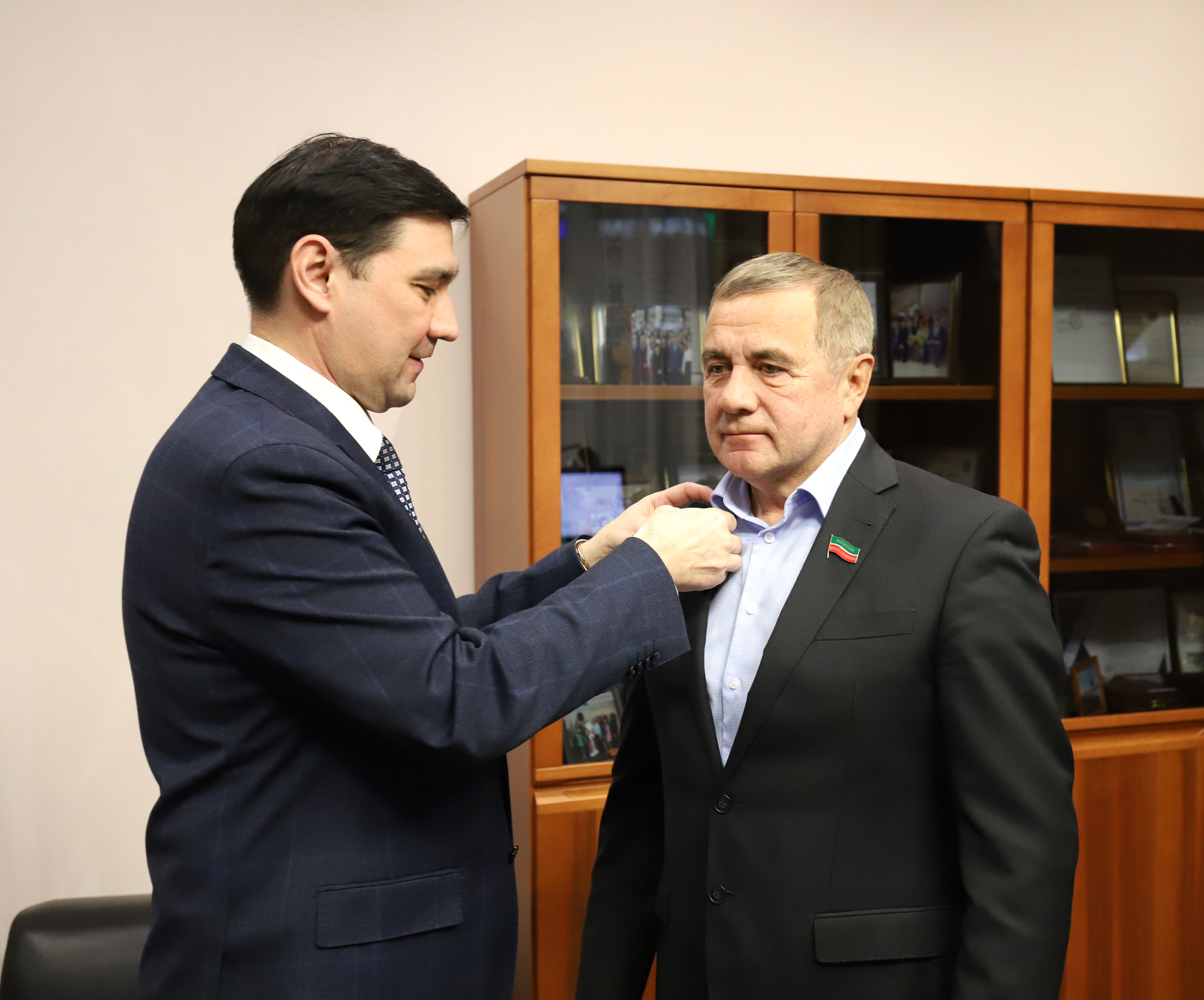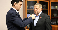 В завершении мероприятия, заместитель председателя Электропрофсоюза РТ ВЭП наградил директора АО «Татэнергосбыт» Рифнур Сулейманова нагрудным памятным знаком в честь 35-летия образования Всероссийского Электропрофсоюза.