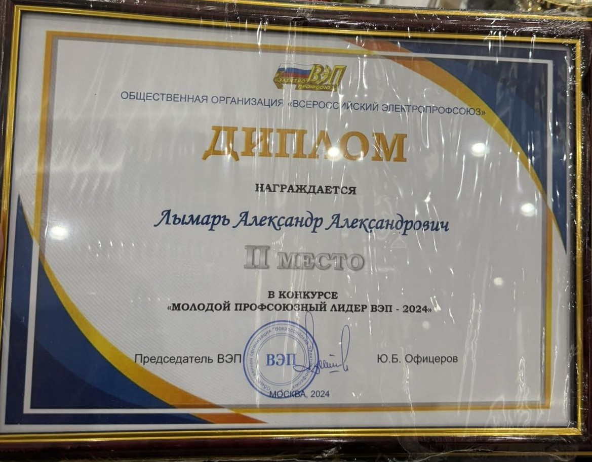 А Александр Александрович Лымарь уже вошел в историю Тюменской межрегиональной организации Общественной организации «Всероссийский Электропрофсоюз» как первый профсоюзный лидер реанимированного в марте 2023 года Молодежного совета ТюмнМО ВЭП.