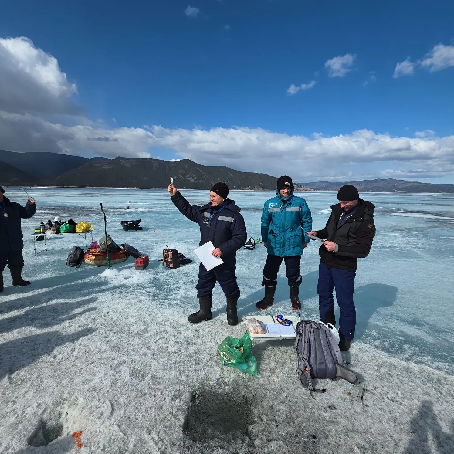 Спортивная ловля проходила на озере Байкал. Здесь приняли участие участники из городов Иркутска и Ангарска. Участники бурили лунки на скорость, лед толщиной 700 мм поддался самому умелому и сильному рыбаку за 32 секунды! Все номинации, что были запланированы к конкурсу, были разыграны.
