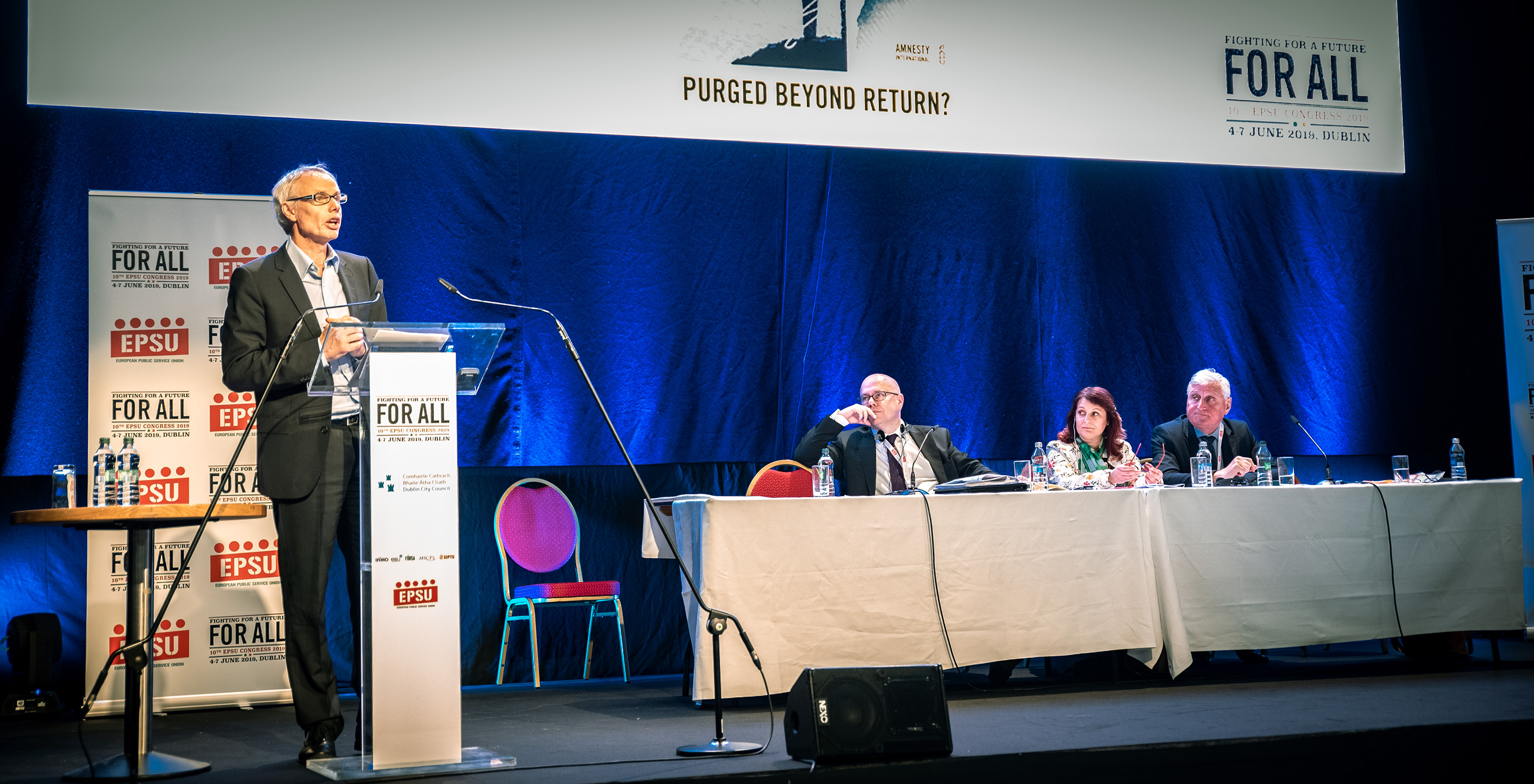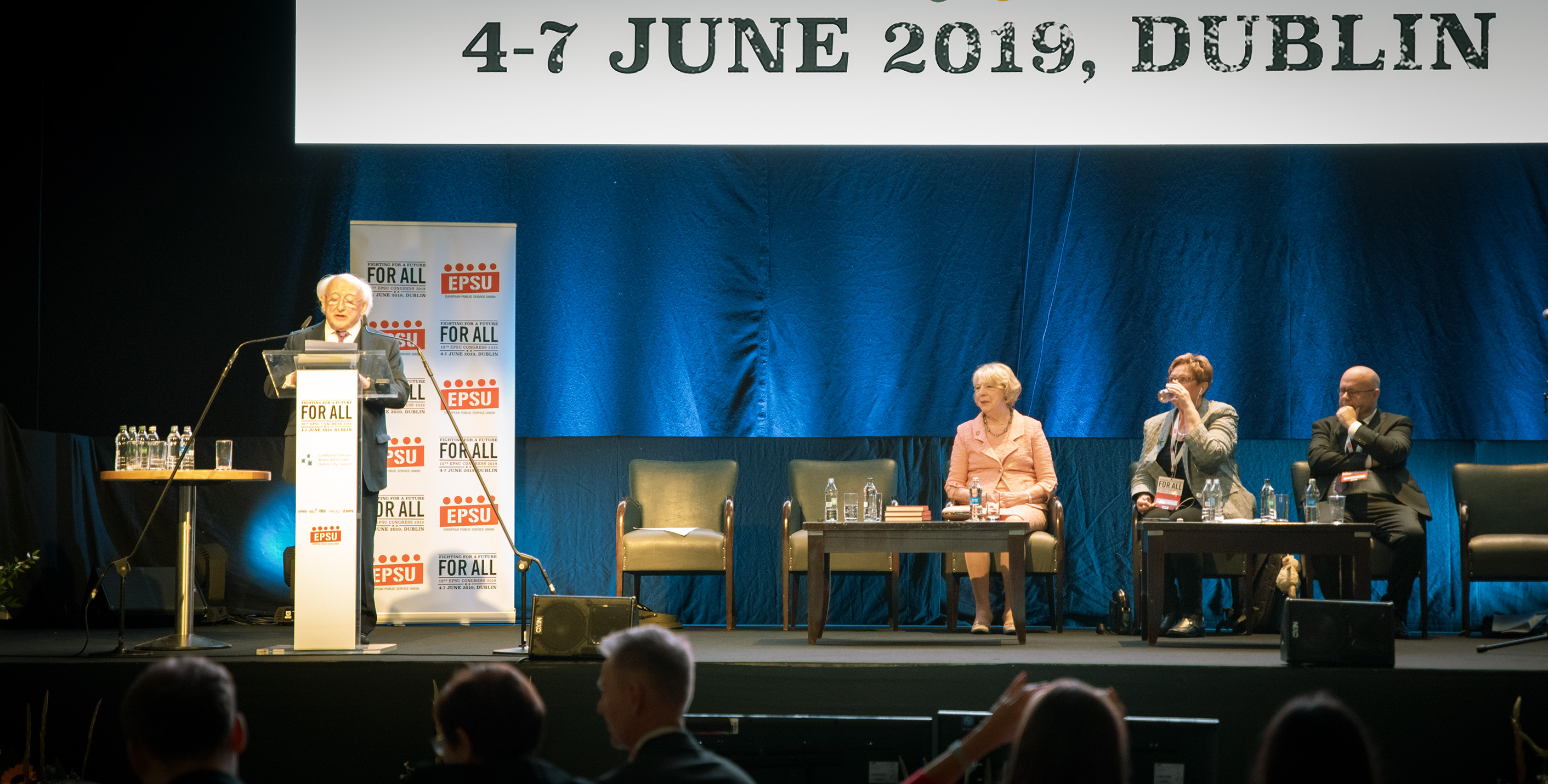 Делегация ВЭП в соответствии с предложенной квотой в составе двух человек – Председателя Профсоюза Ю.Б. Офицерова и руководителя сектора международного сотрудничества Г.Б. Шпилькиной – приняла участие в работе 10-го Конгресса Европейской федерации профсоюзов общественного обслуживания (ЕФПОО) под девизом «Борьба за будущее для всех», который состоялся в Дублине (Республика Ирландия) с 4 по 7 июня 2019 года.