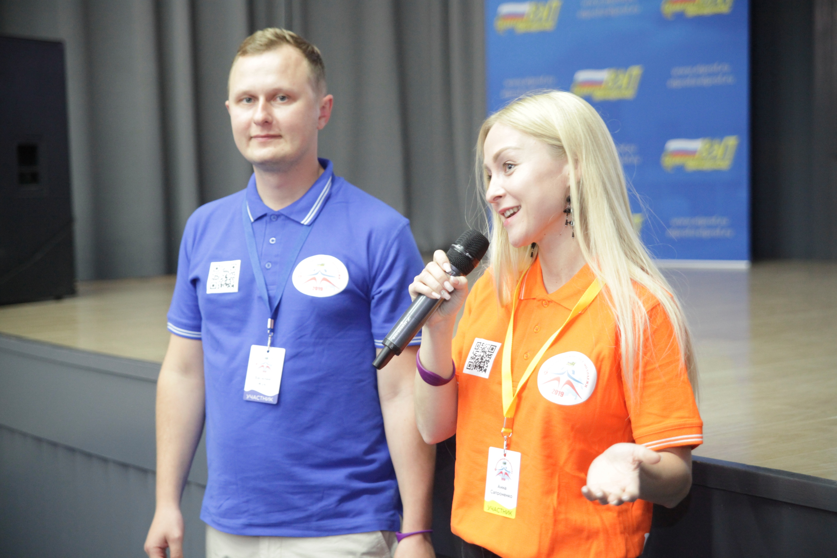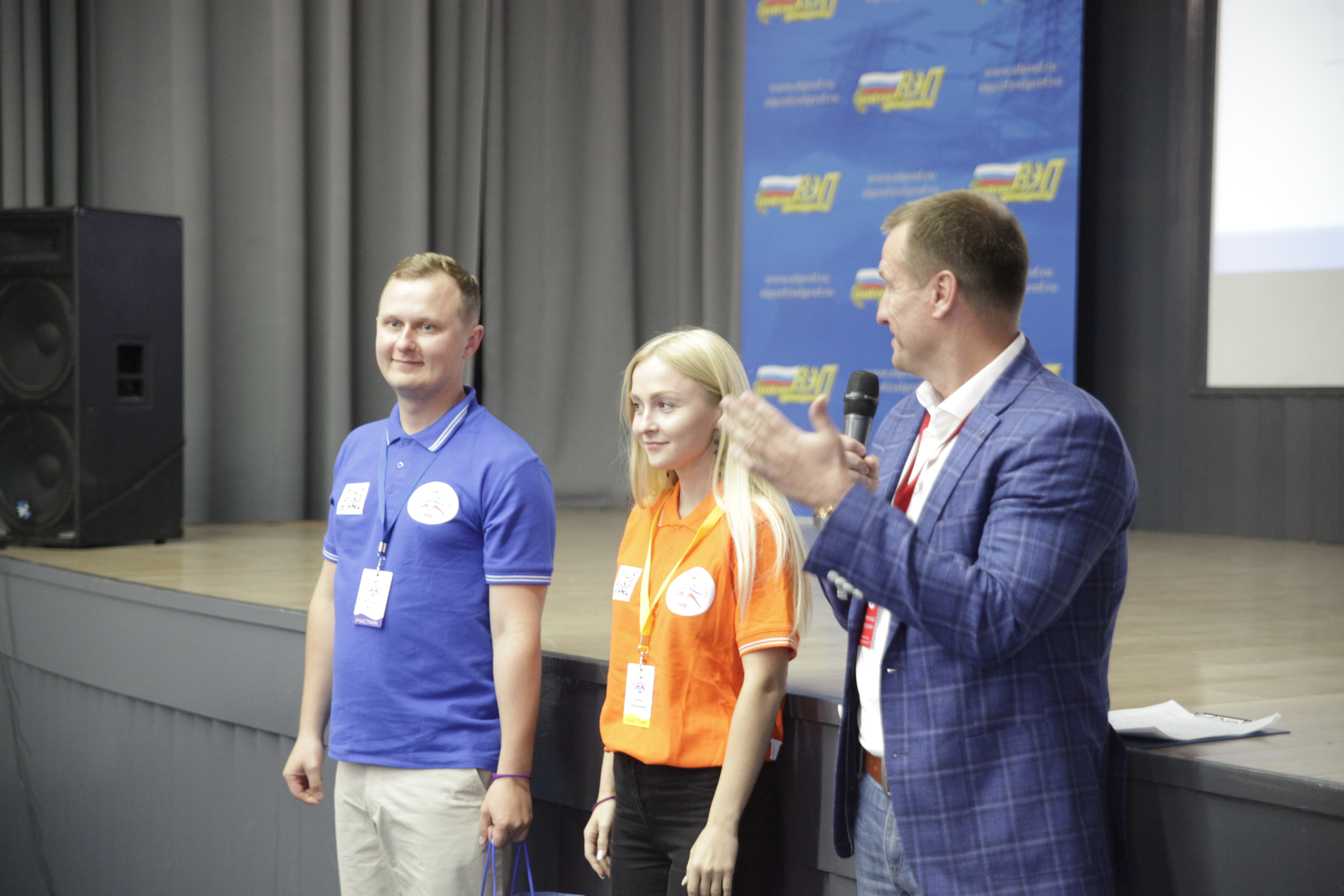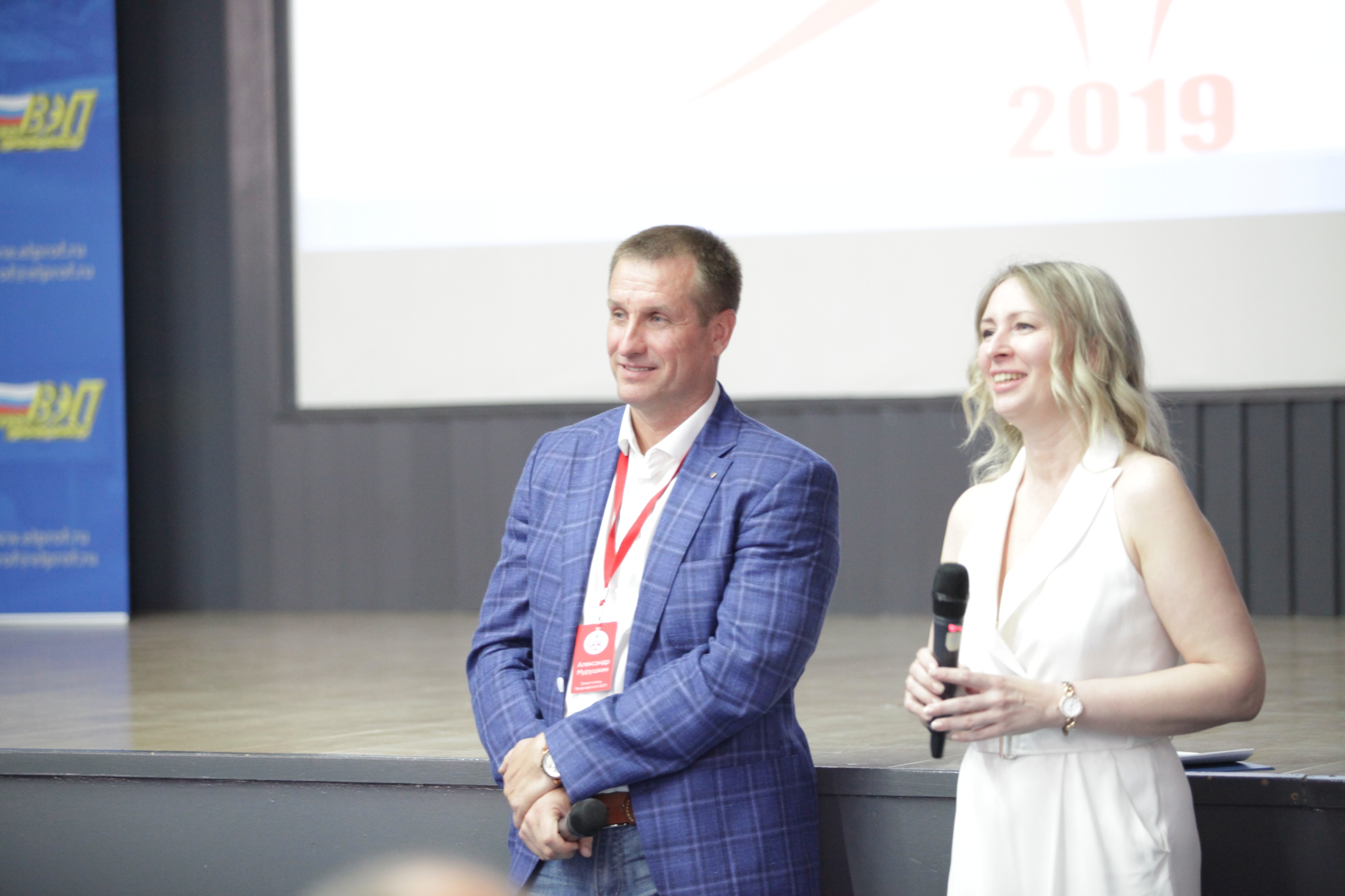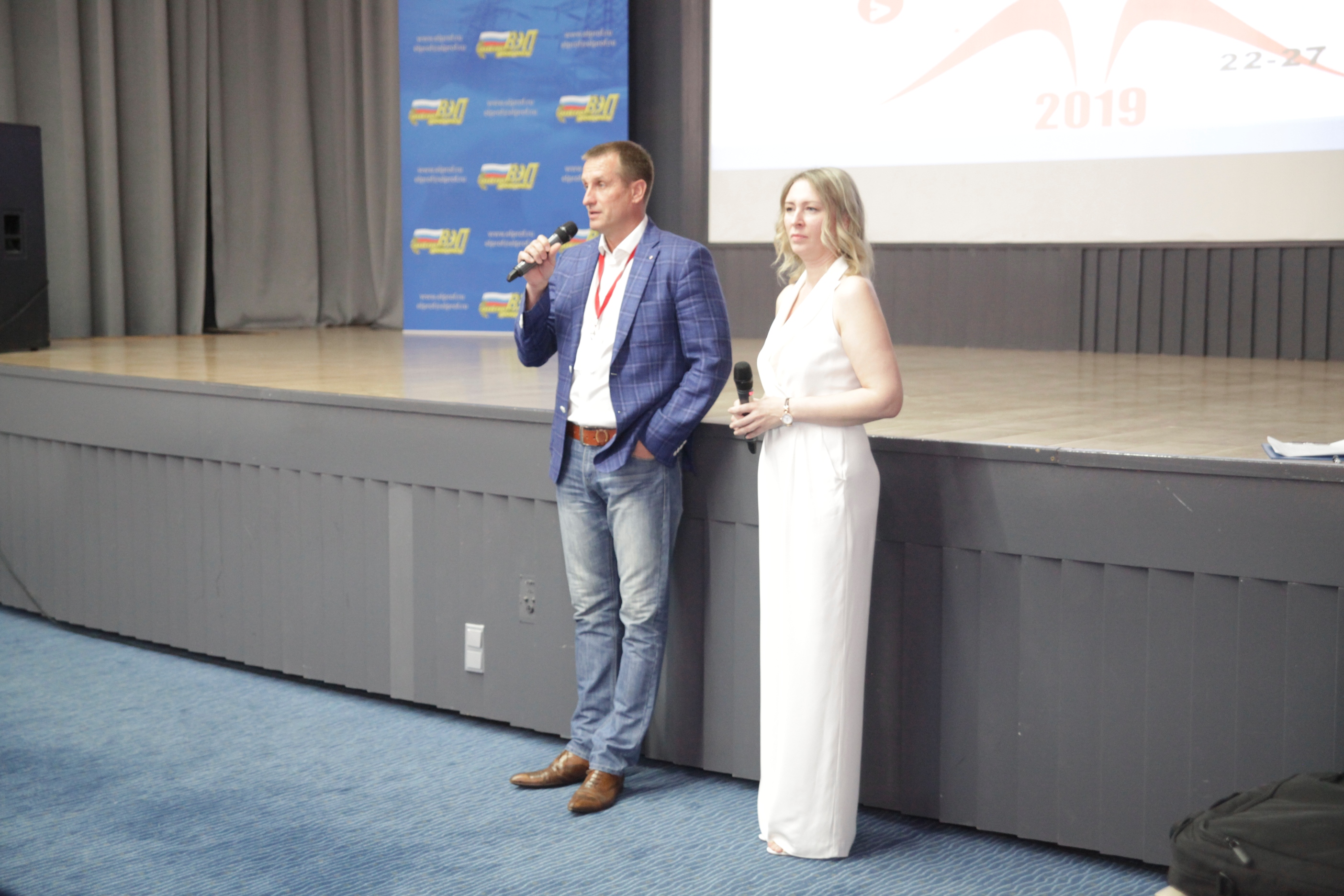 И вот в торжественной обстановке все собрались на первое официальное мероприятие слета – вечер знакомств, который провели Александр Мурушкин – заместитель Председателя ВЭП и Анна Колабаева – руководитель департамента организационного развития и правового обеспечения аппарата ВЭП.