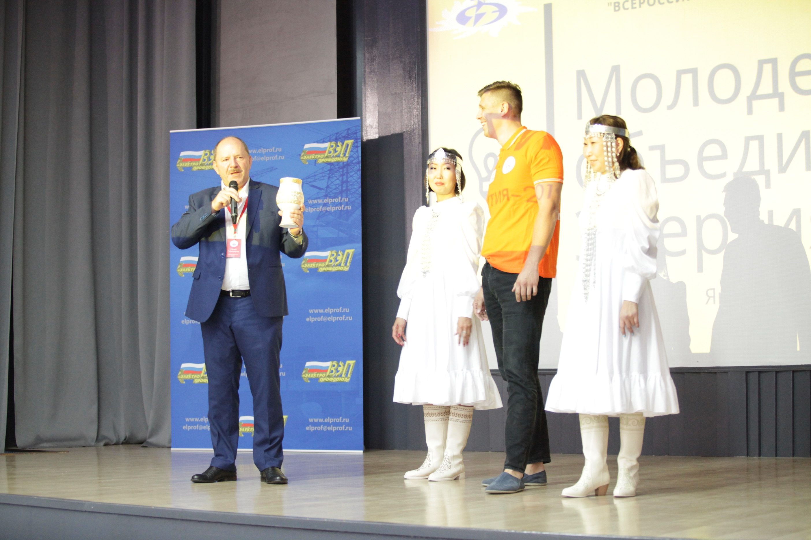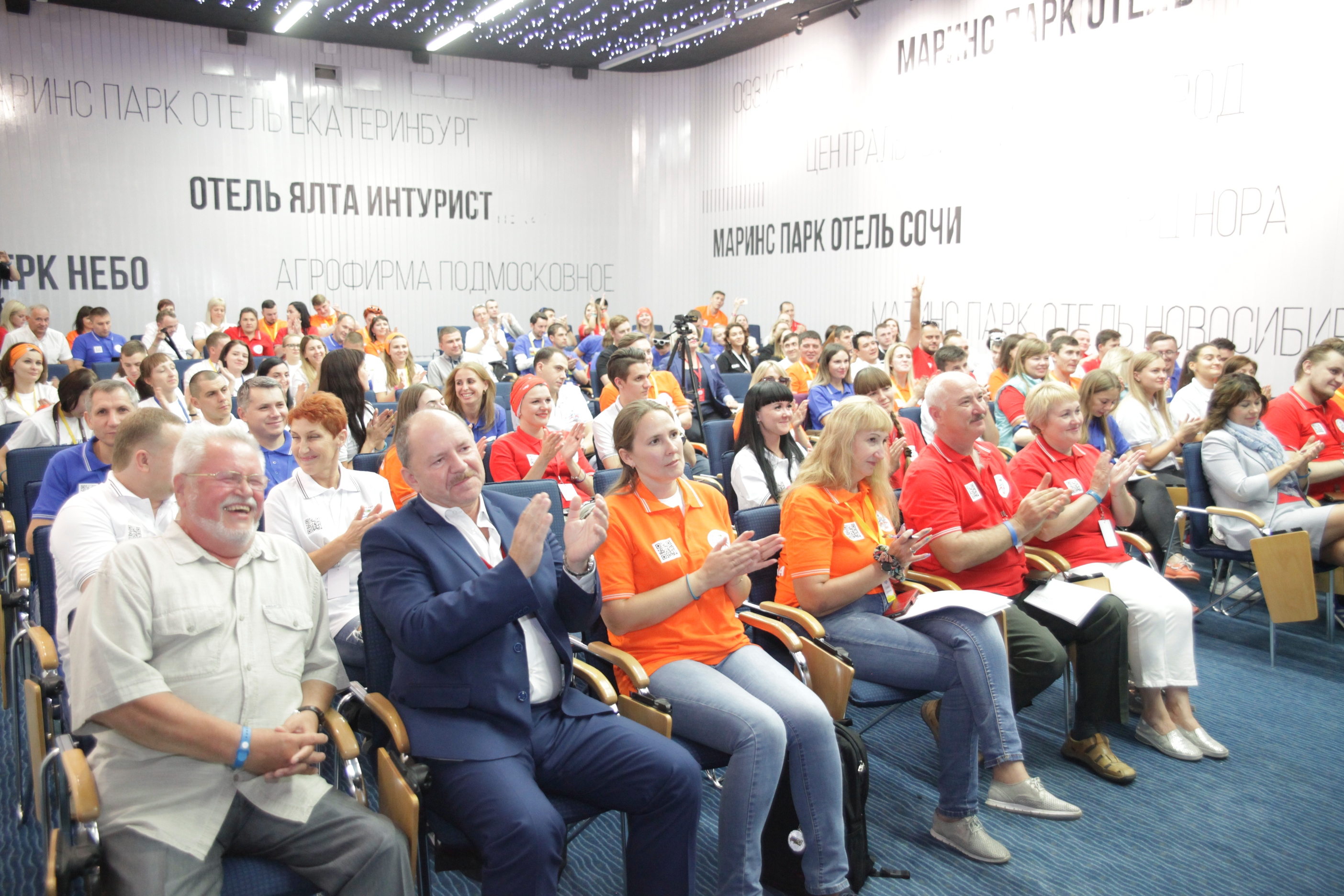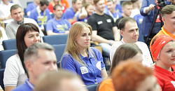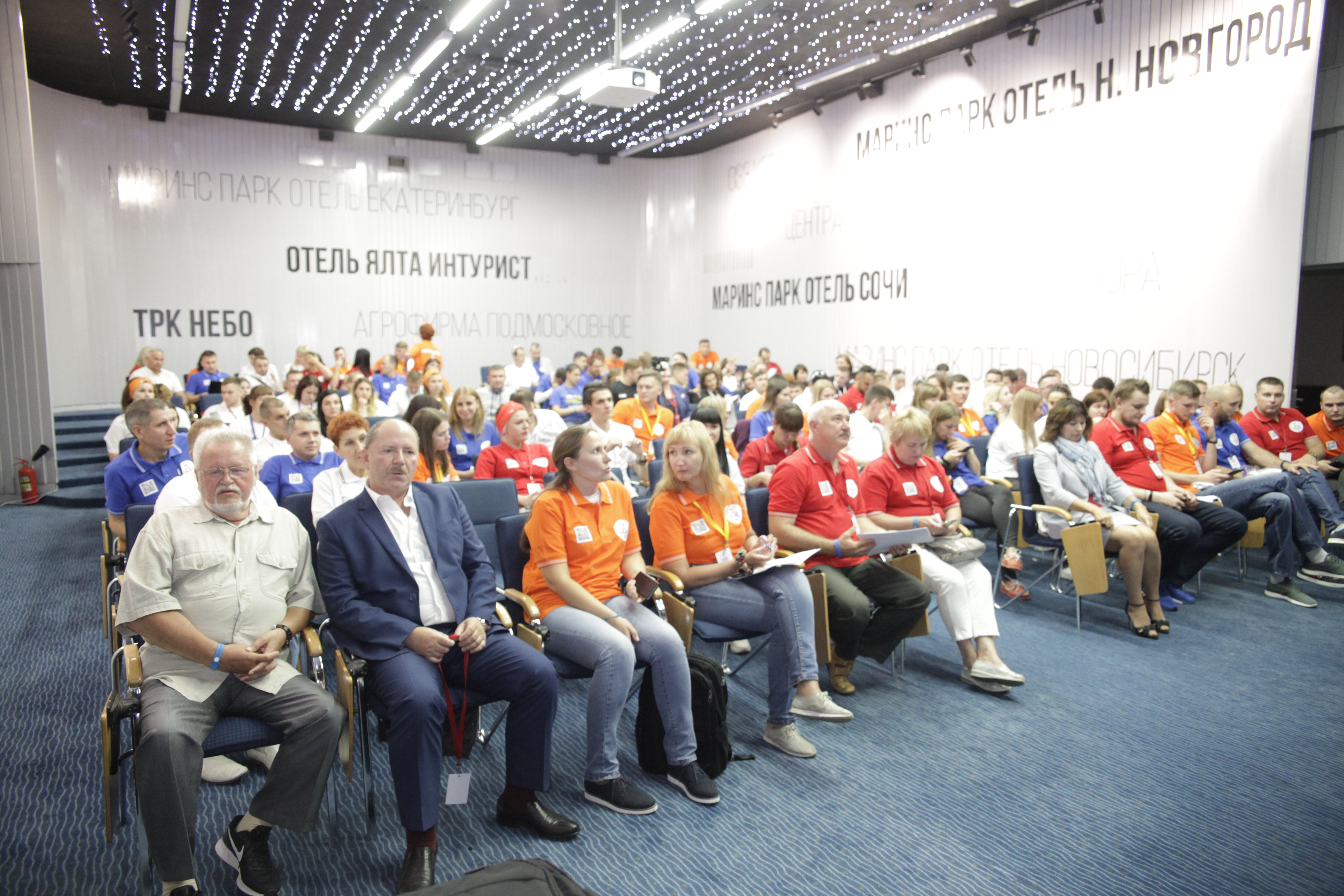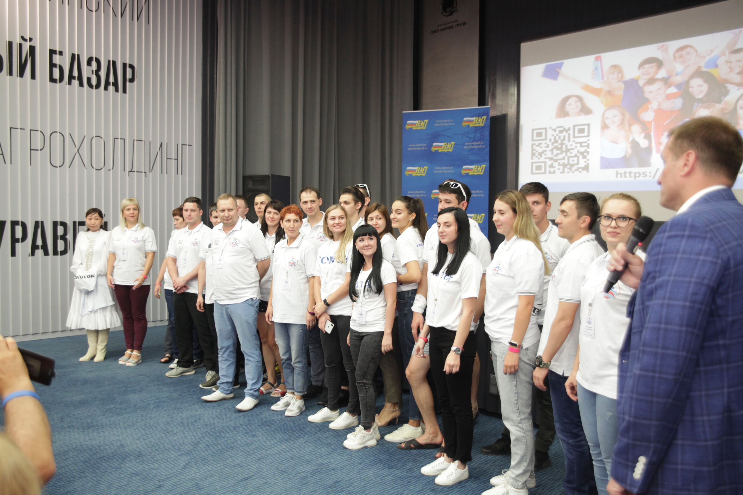 И вот в торжественной обстановке все собрались на первое официальное мероприятие слета – вечер знакомств, который провели Александр Мурушкин – заместитель Председателя ВЭП и Анна Колабаева – руководитель департамента организационного развития и правового обеспечения аппарата ВЭП.