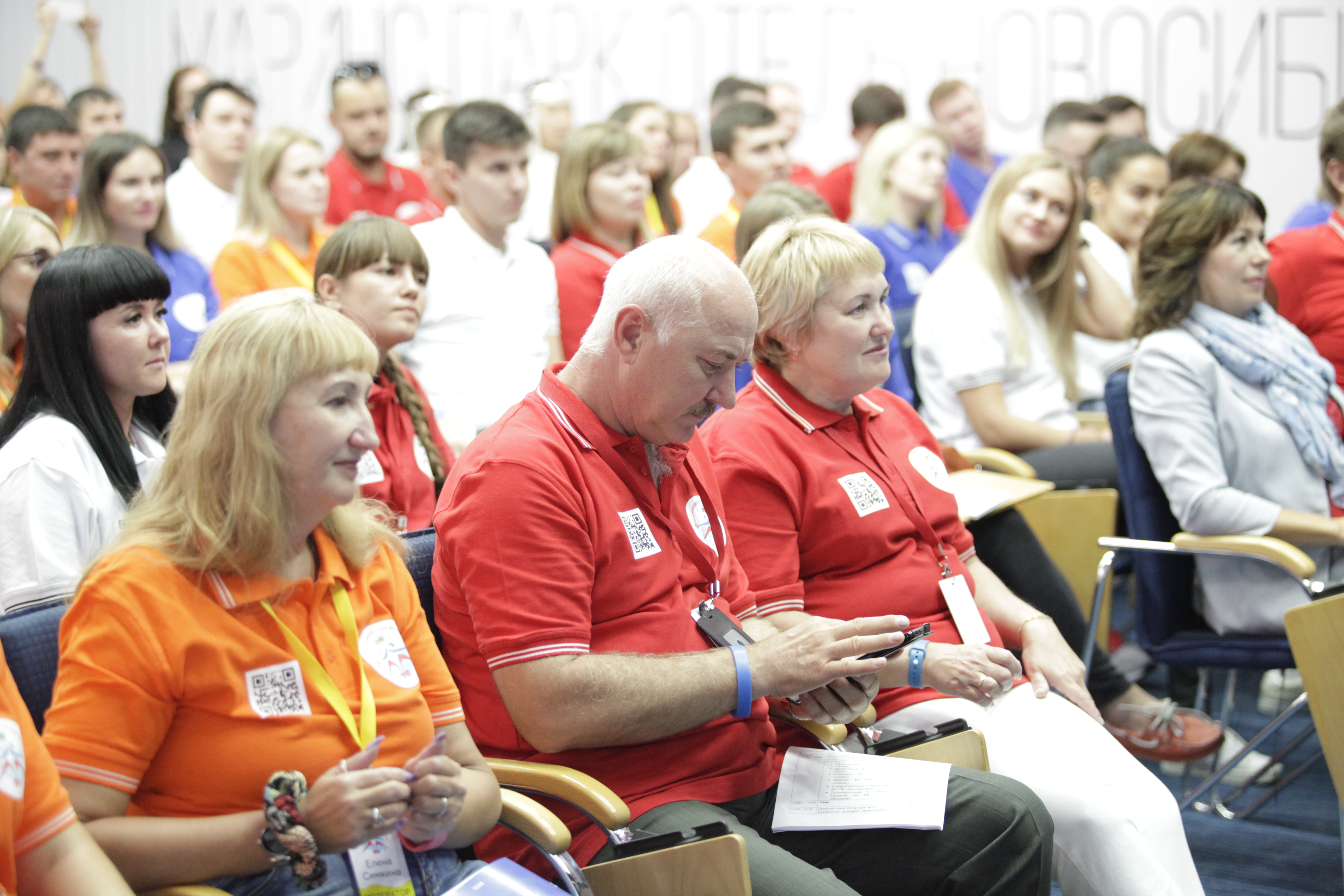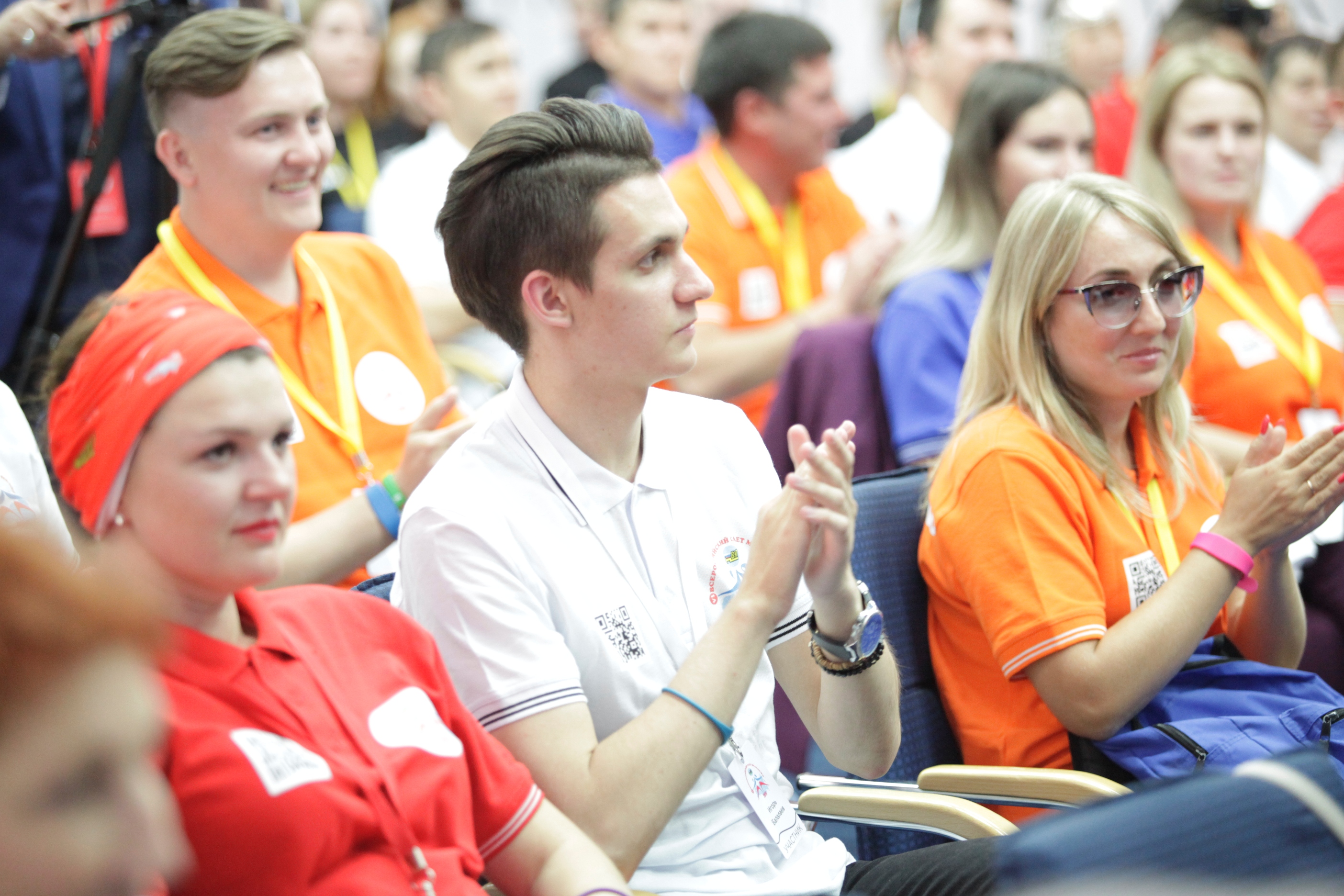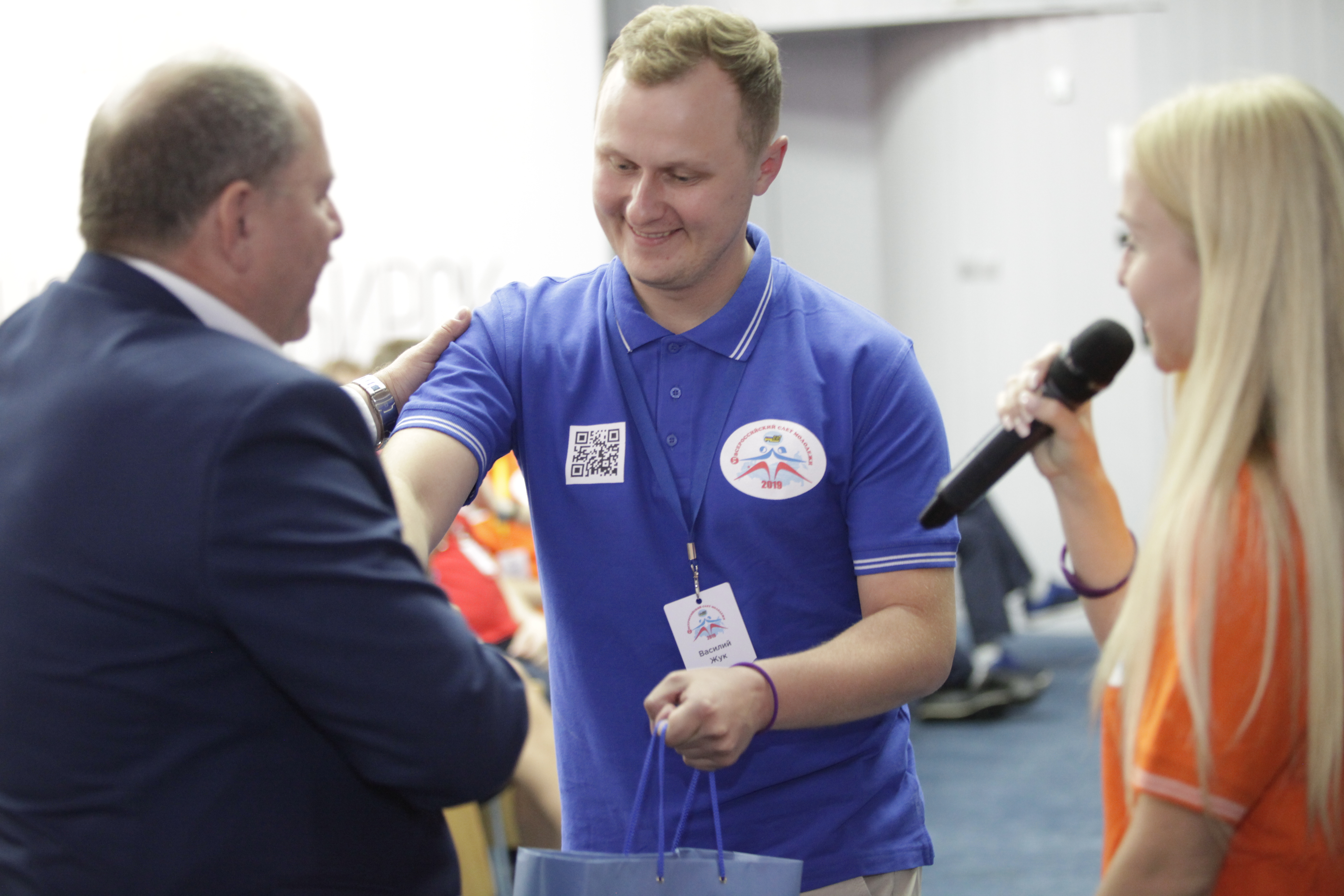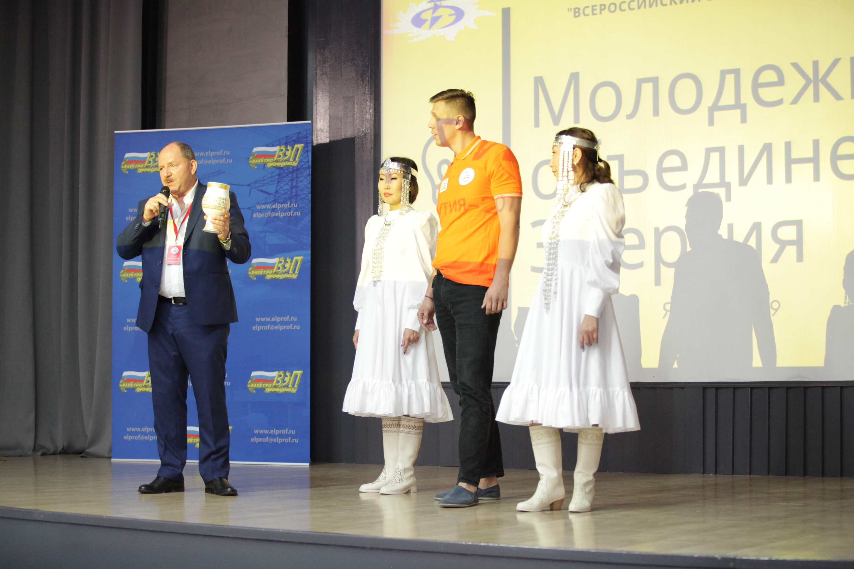 И вот в торжественной обстановке все собрались на первое официальное мероприятие слета – вечер знакомств, который провели Александр Мурушкин – заместитель Председателя ВЭП и Анна Колабаева – руководитель департамента организационного развития и правового обеспечения аппарата ВЭП.