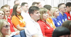 После презентаций по федеральным округам, все команды по - очереди выходили на сцену, знакомились со своими модераторами и получали из рук А.В. Мурушкина задание в так называемом, «пакете из штаба».