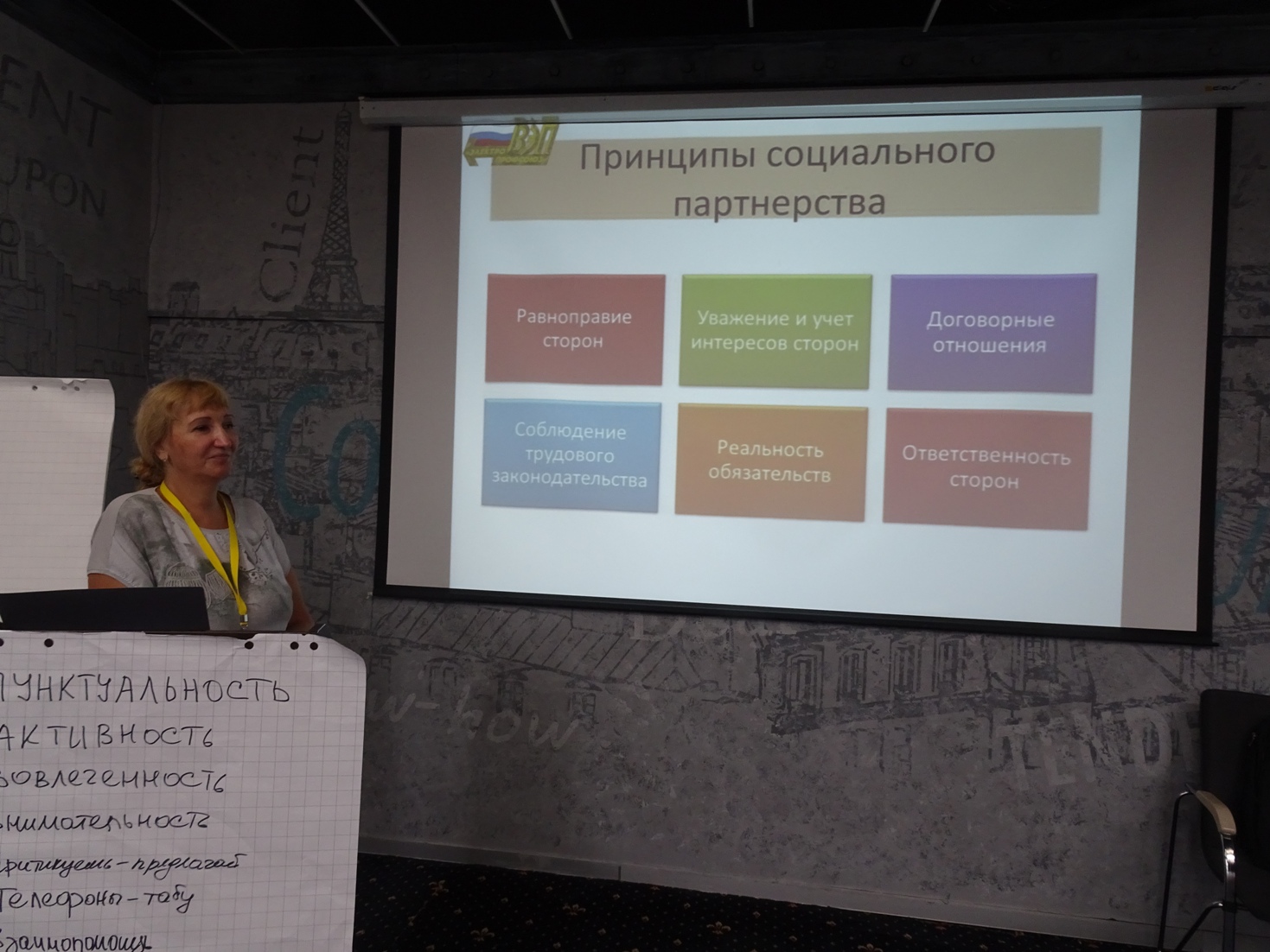 Модераторы Е.В.Симкина, председатель Забайкальской краевой организации ВЭП, председатель постоянной Комиссии ЦК ВЭП по работе с молодёжью и И.В. Фрик, специалист по организационной работе Иркутской областной организации ВЭП, обсуждая с молодежью тему «Социальное партнёрство – миф или реальность?!» объясняли особенности и определенные правила взаимодействия с работодателями по заключению коллективного договора, рассказывали о тонкостях переговорного процесса, работали над предложениями ребят внести в молодежный раздел ОТС те или иные разделы.