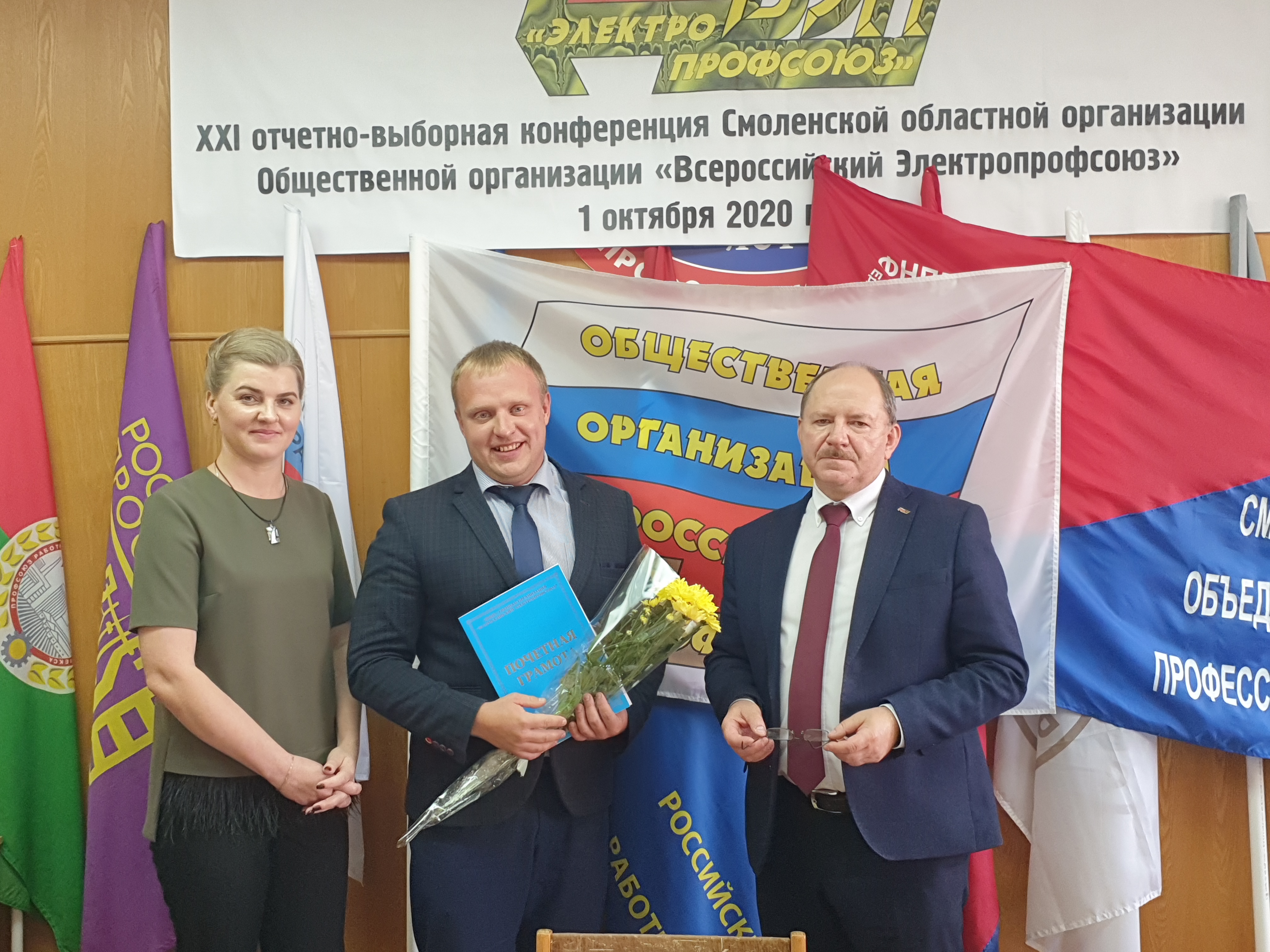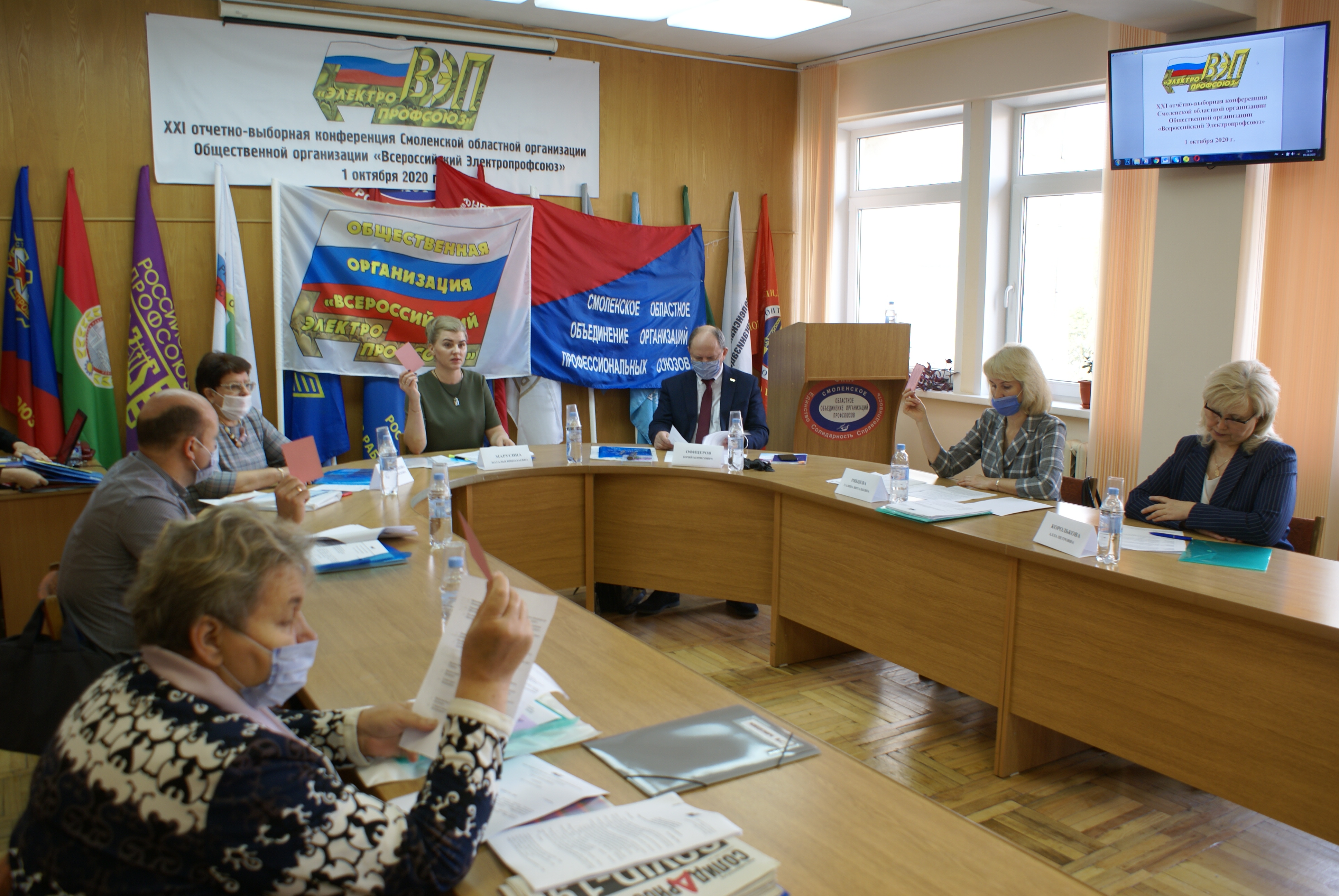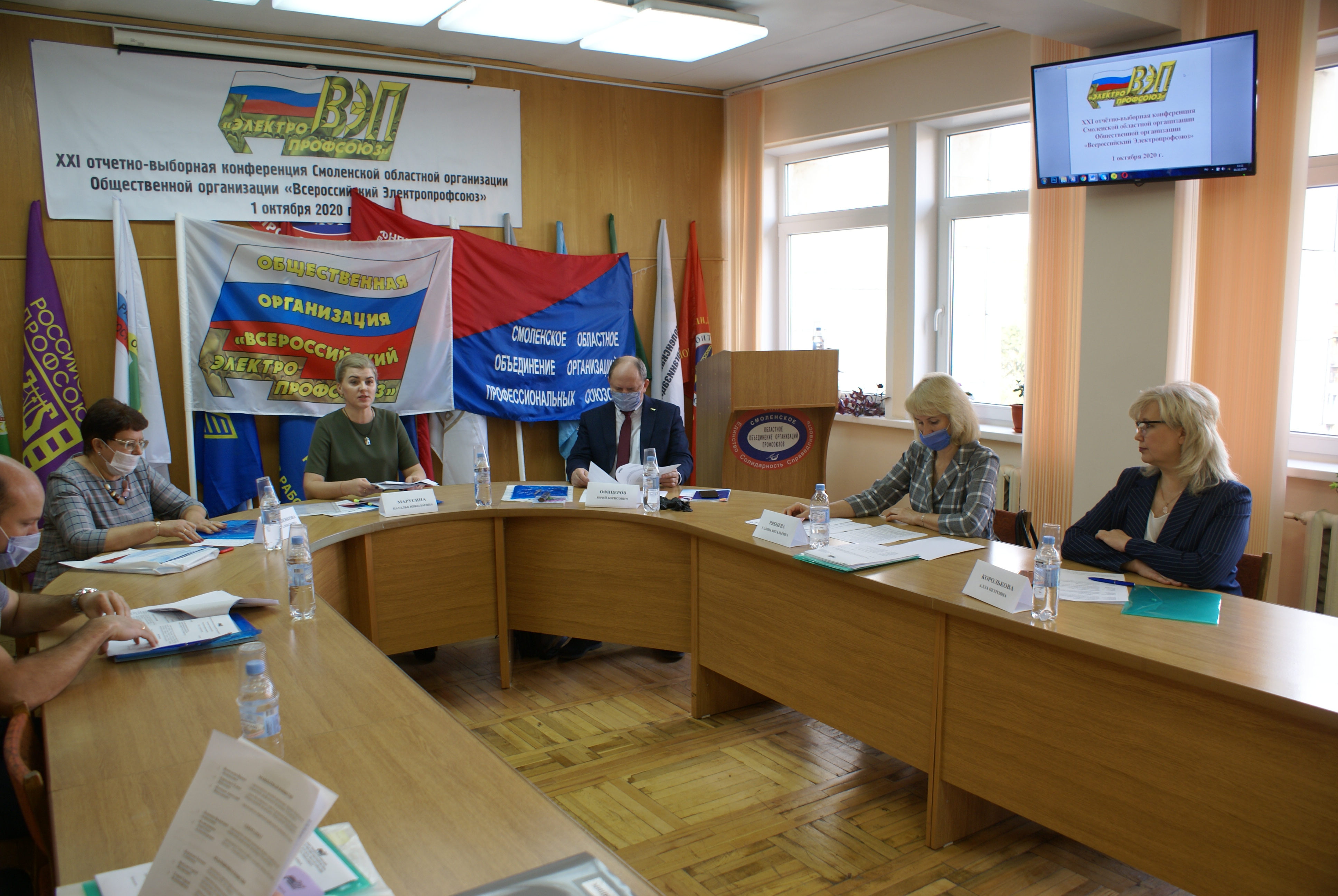 1 октября 2020 года в здании Смоленского Профобъединения состоялась XXI отчётно-выборная конференция Смоленской областной организации Общественной организации «Всероссийский Электропрофсоюз». В работе конференции приняли участие 17 из 18 избранных делегатов, представляющих 8 первичных профсоюзных организаций отрасли. Традиционно работа конференции началась с торжественного гимна «Всероссийского Электропрофсоюза». С итоговым докладом за пятилетнюю работу областного комитета Смоленской областной организации выступила председатель – Марусина Наталья Николаевна.