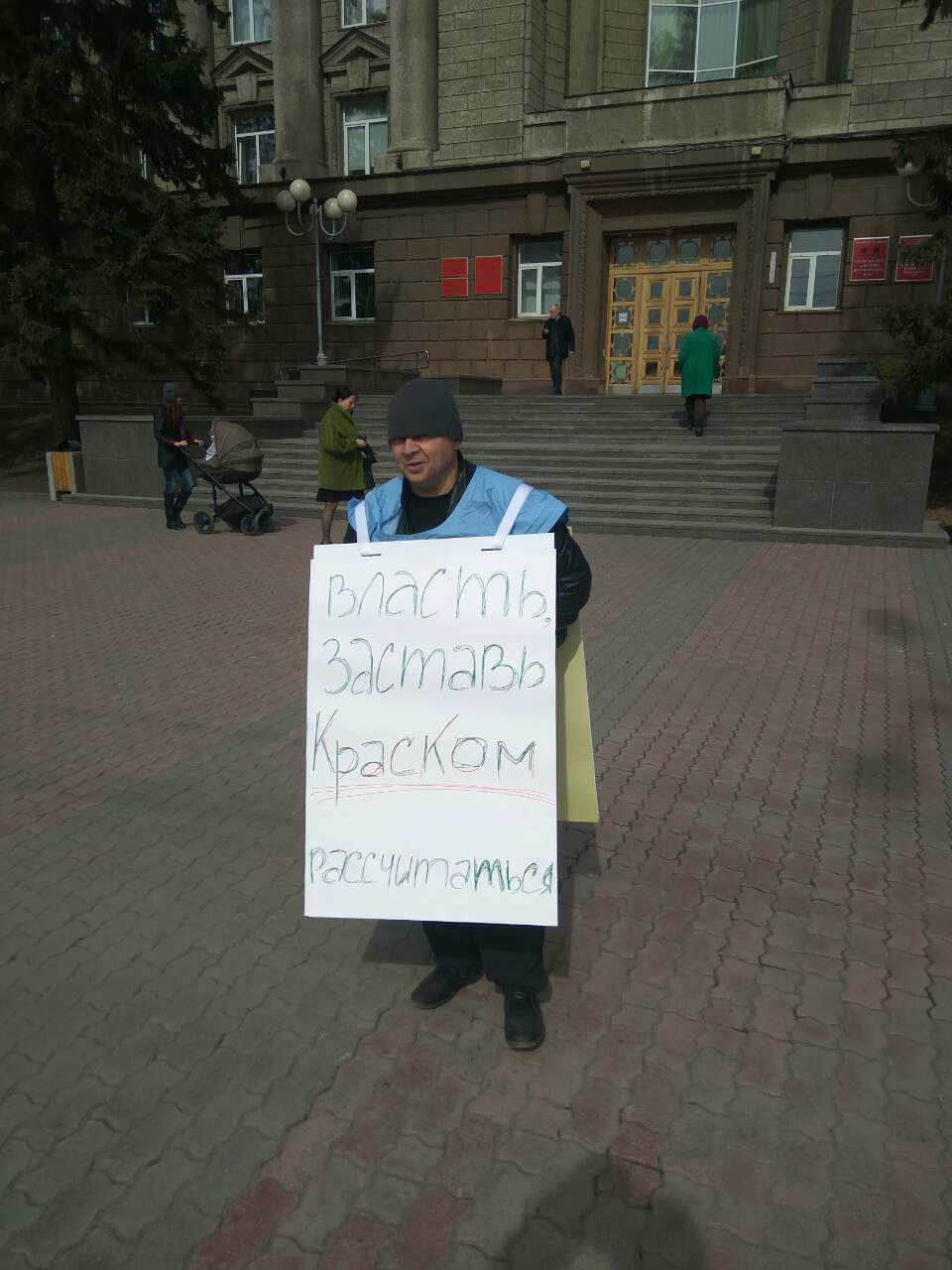 Не дожидаясь, пока маховик социального партнёрства раскрутится на полную мощность (а процесс этот, как правило, занимает достаточно продолжительное время), было принято решение о проведении одиночных пикетов у здания Правительства Красноярского края и Администрации г. Красноярска. Тем более, что в последний раз (в 2015 году) вопрос с погашением долгов по заработной плате перед работниками котельной был одномоментно решён именно с подачей заявки на проведение протестных действий в форме митинга!