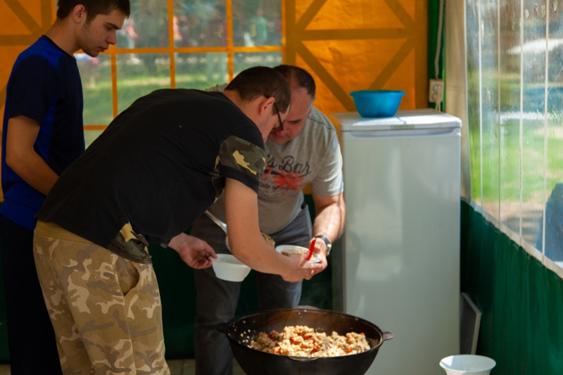 Для всех на берегу Волги было организовано много конкурсов, соревнований, смеха, музыки и танцев! А уж шулюм и плов, приготовленные только мужчинами, ели, нахваливая, все - и дети и взрослые. В итоге под наш флешмоб подтанцовывала вся турбаза! Здорово вместе! Спасибо профсоюзному комитету!