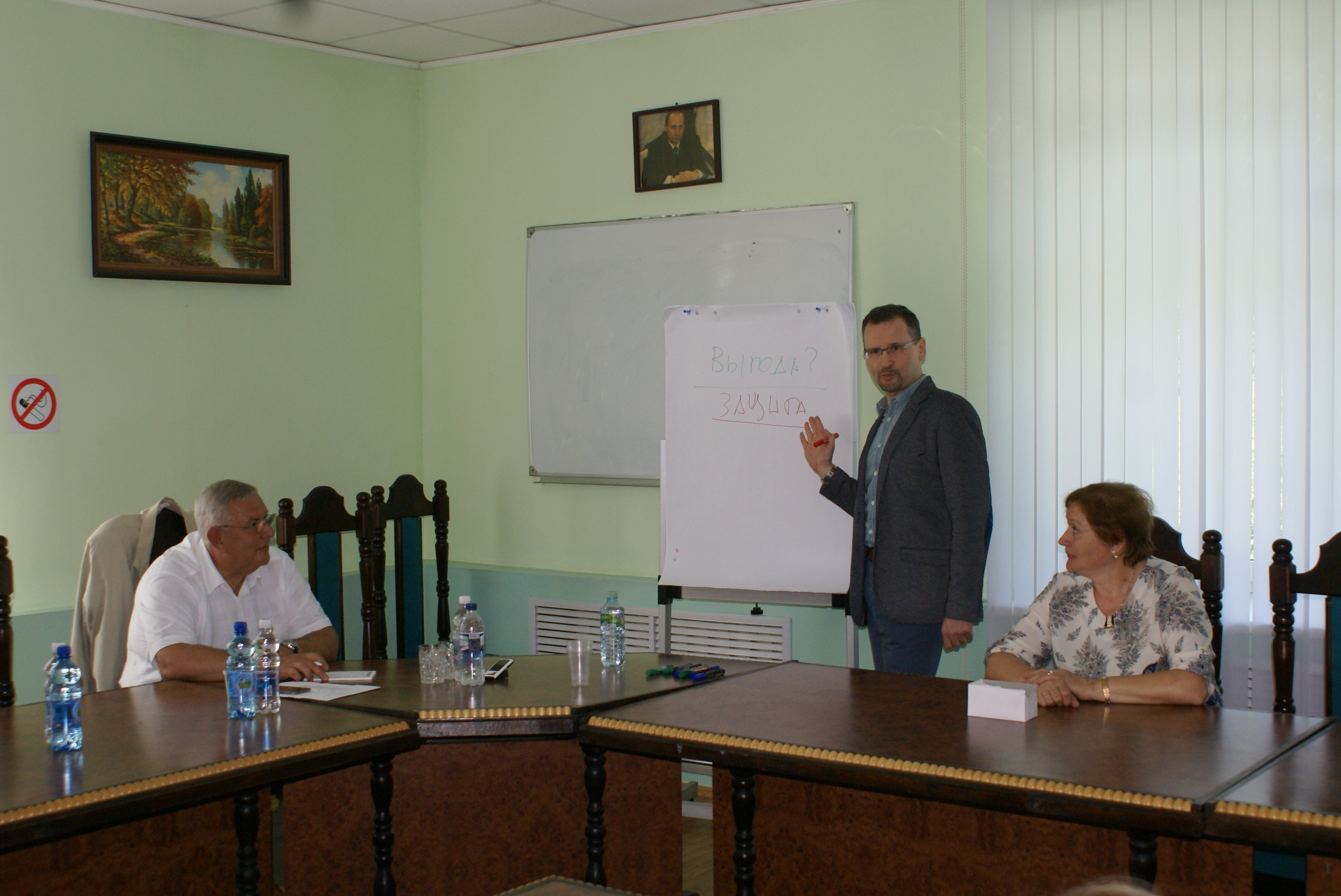 ФОТО 2: В центре — А.В. Глазырин, слева — директор Учебно-методического центра Смоленского профобъединения - Кирпичёва А.К., справа — председатель Смоленского профобъединения — Максименко Е.И.