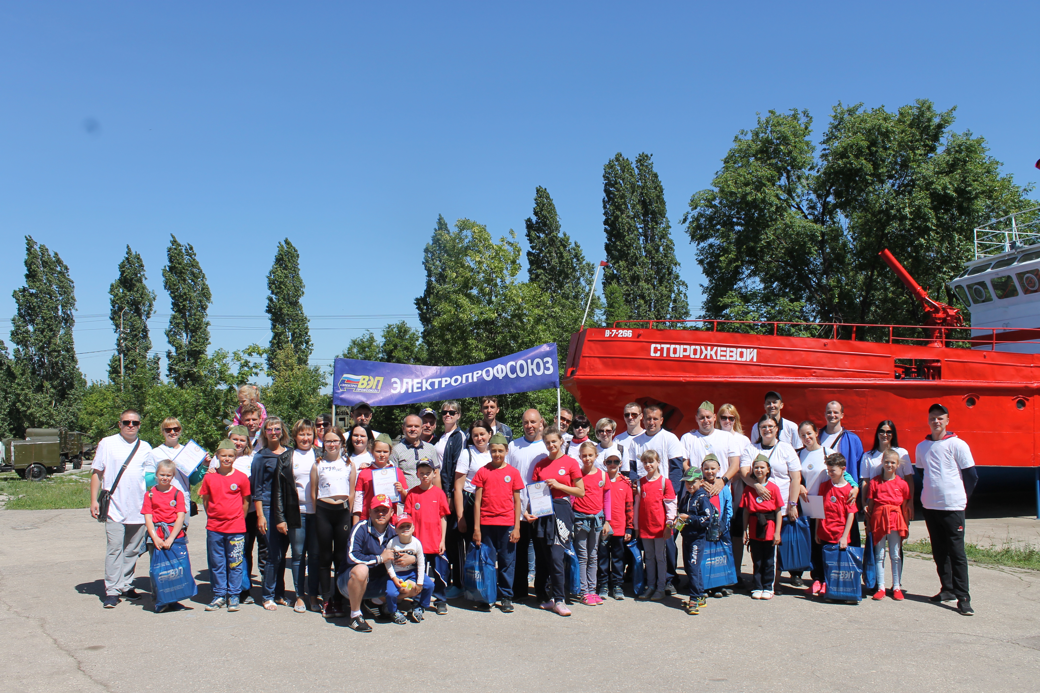 Семьи получили по футболке и значку с логотипом Электропрофсоюза и дружной семьи, детям раздали военные пилотки. Спортивный праздник провела организация «Праздничный Саратов» и её ведущие Зоя, Екатерина и Максим.