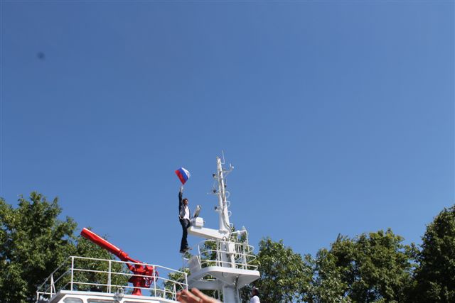Всего было пять таких заданий, которые заканчивались водружением флага на мачту корабля. Лучше всех со всеми заданиями справилась команда «Пламя», а первыми водрузили знамя команда «Красноармеец», но по условиям мероприятия победила дружба.