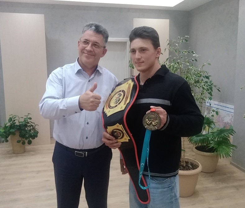 Председатель первичной профсоюзной организации - Фоат Абдуллазянов и директор Приволжских электрических сетей – Вильдан Савилевич лично поздравили чемпиона с очередным успехом и пожелали дальнейших побед! Артур же в свою очередь поблагодарил руководство за поддержку и профсоюзную организацию за оказанную помощь!
