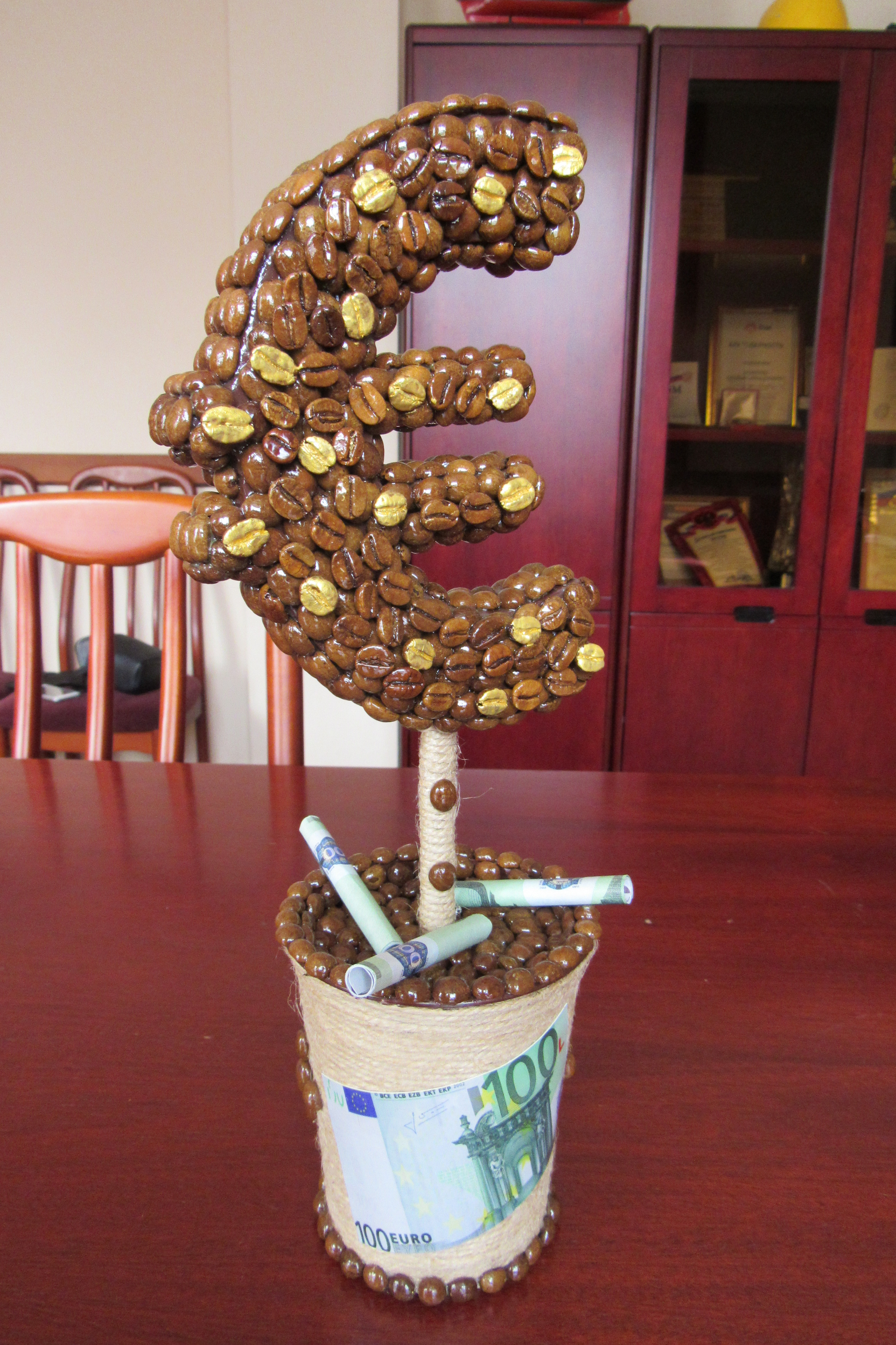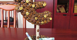 · доллар, выполненный из кофейных зёрен;