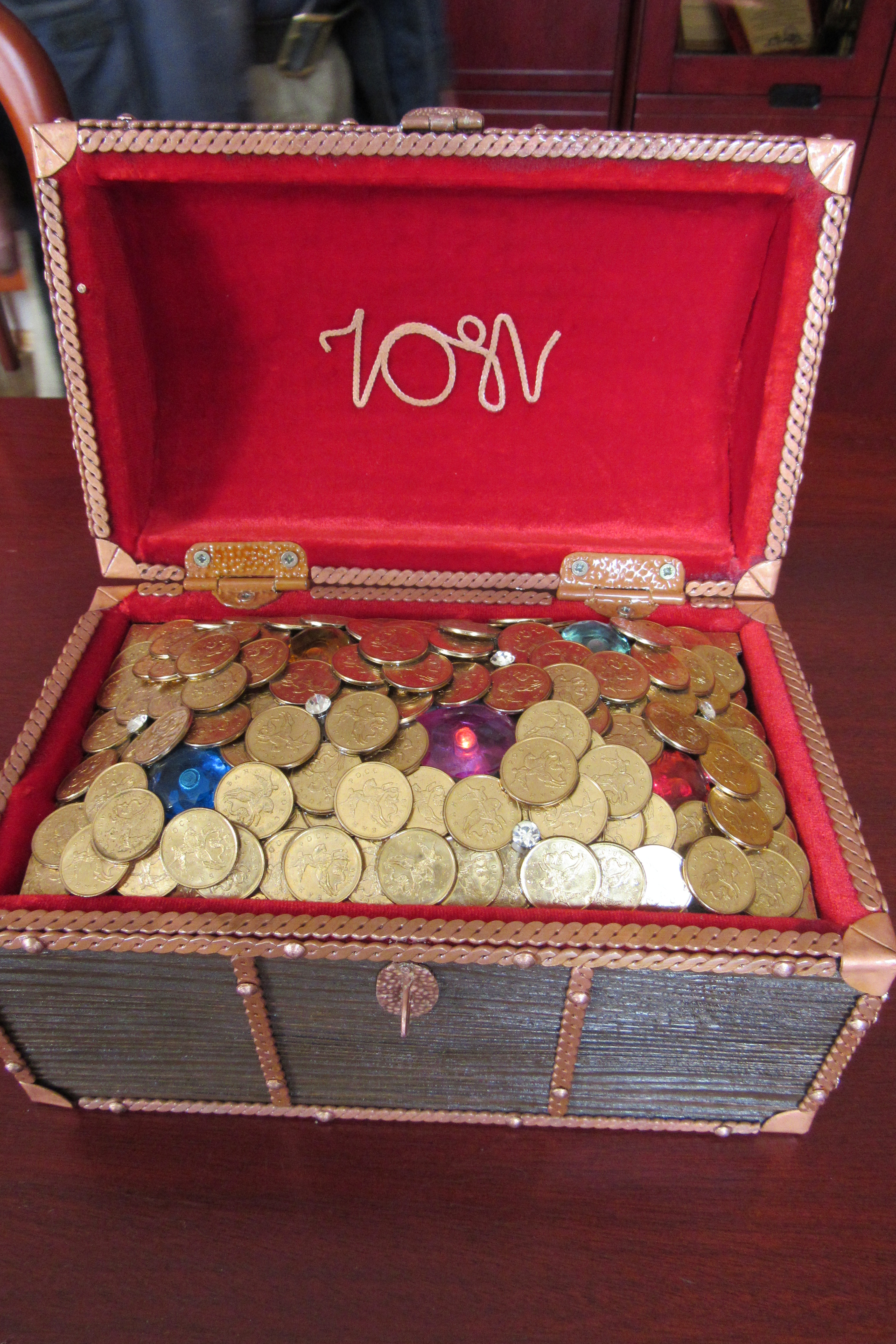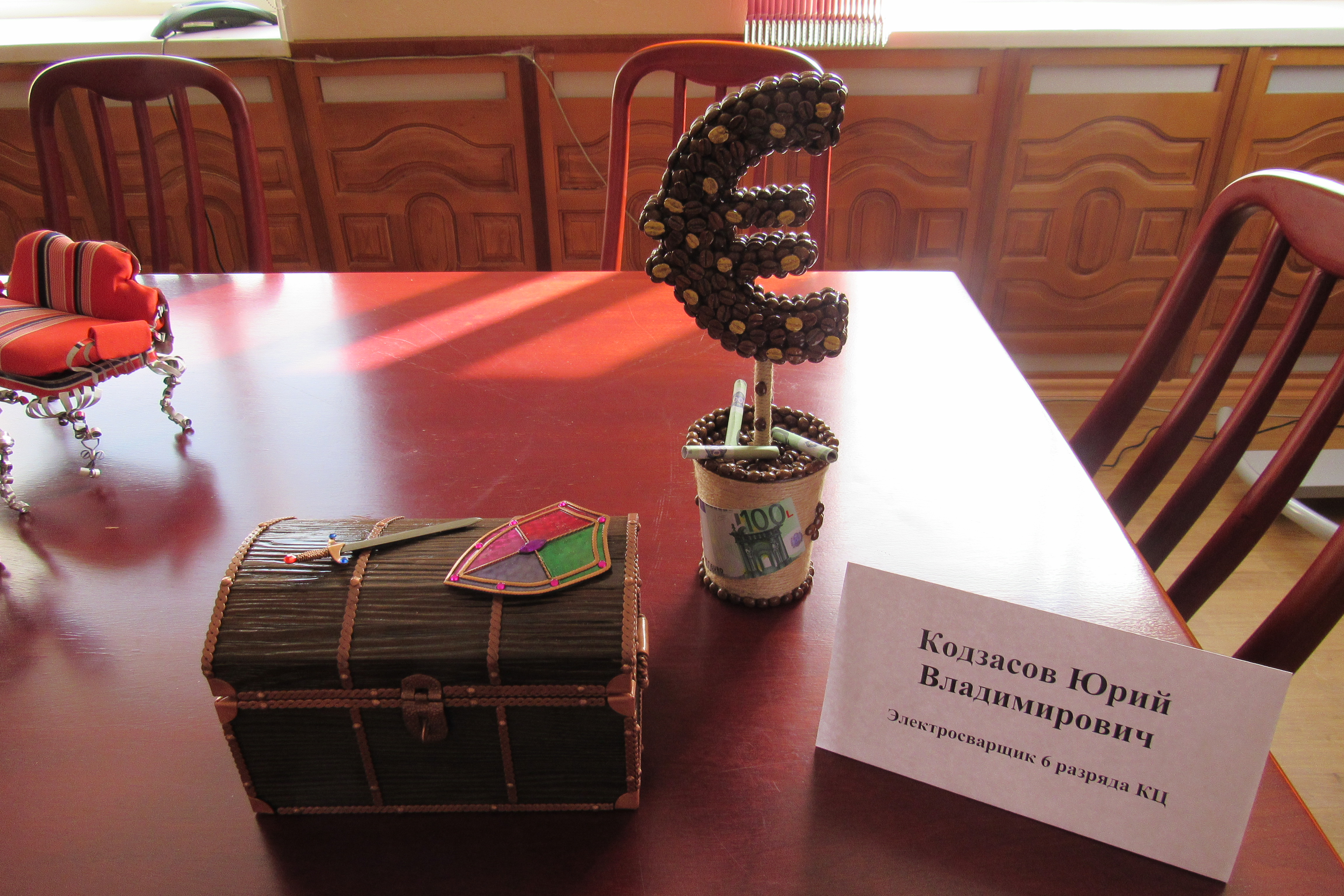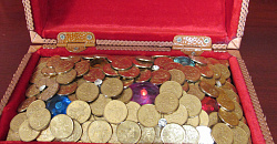 · шкатулка и копилки, выполненные с использованием стекла, камня, дерева, в которых объединены монеты нескольких эпох: советские, времён 90-х годов и современные, включая монеты иностранных государств;
