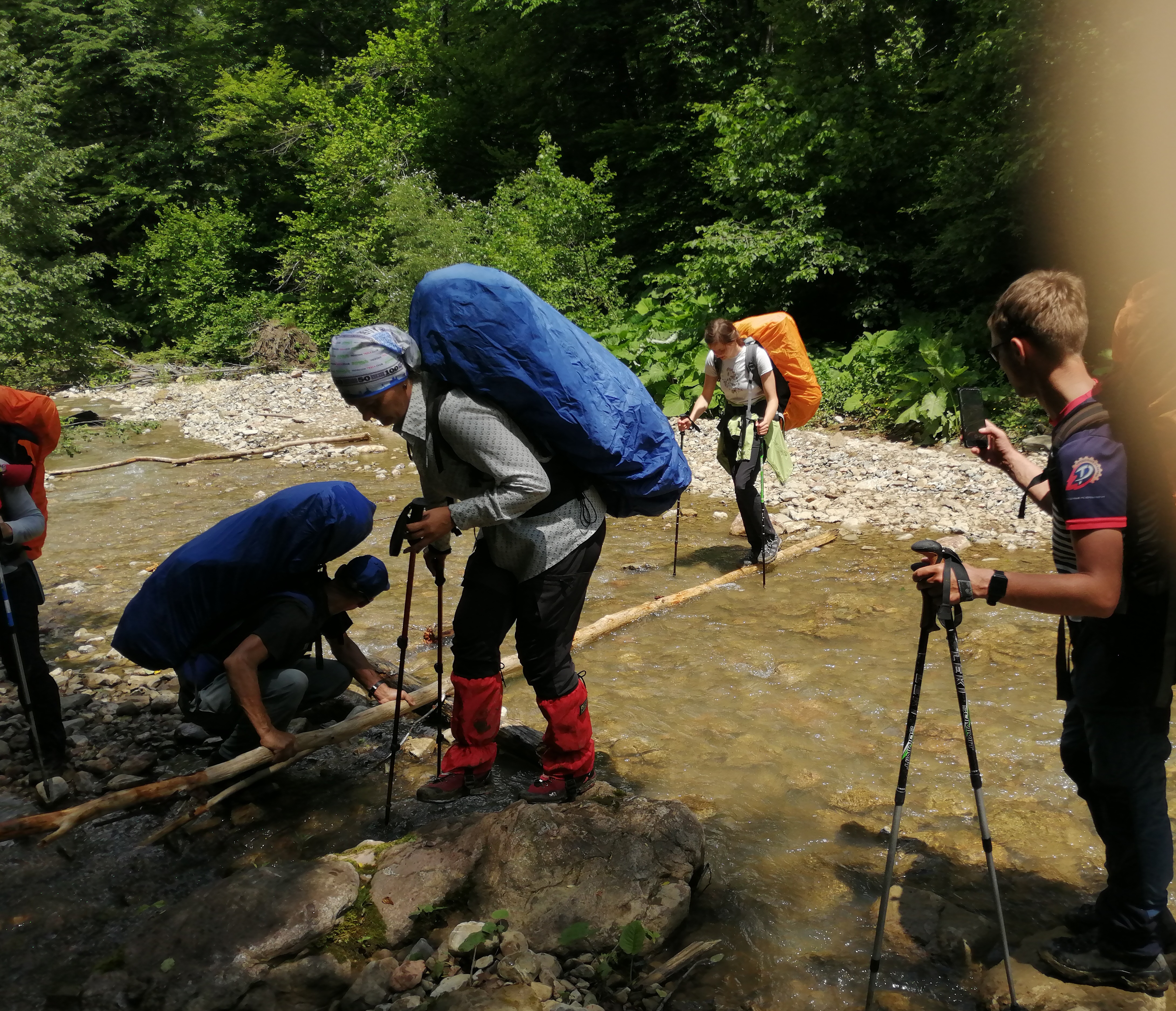 Обратный путь занял по времени сутки с промежуточной ночевкой на стоянке «Тайвань-2» в лесу. Дождь стал уже неизменным спутником нашего путешествия, привнося особую изюминку при спуске вниз и обогащая словарный запас нашего отряда. И как бонус за все перенесенные мытарства в пути солнце выглянуло и растопило грязь на наших ботинках в аккурат во время крайней остановки на берегу реки Сахрай в ожидании заброски обратно в село. Солнце грело, река манила, деревья шептали… Не прошло и пяти минут как закаленный южной волгоградской жарой наш отряд оказался в холодной, перехватывающей дух горной реке. Чтобы по-настоящему прочувствовать весь кайф купания в горной реке, необходимо повторить все действия, описанные выше в этом очерке! Иначе никак!