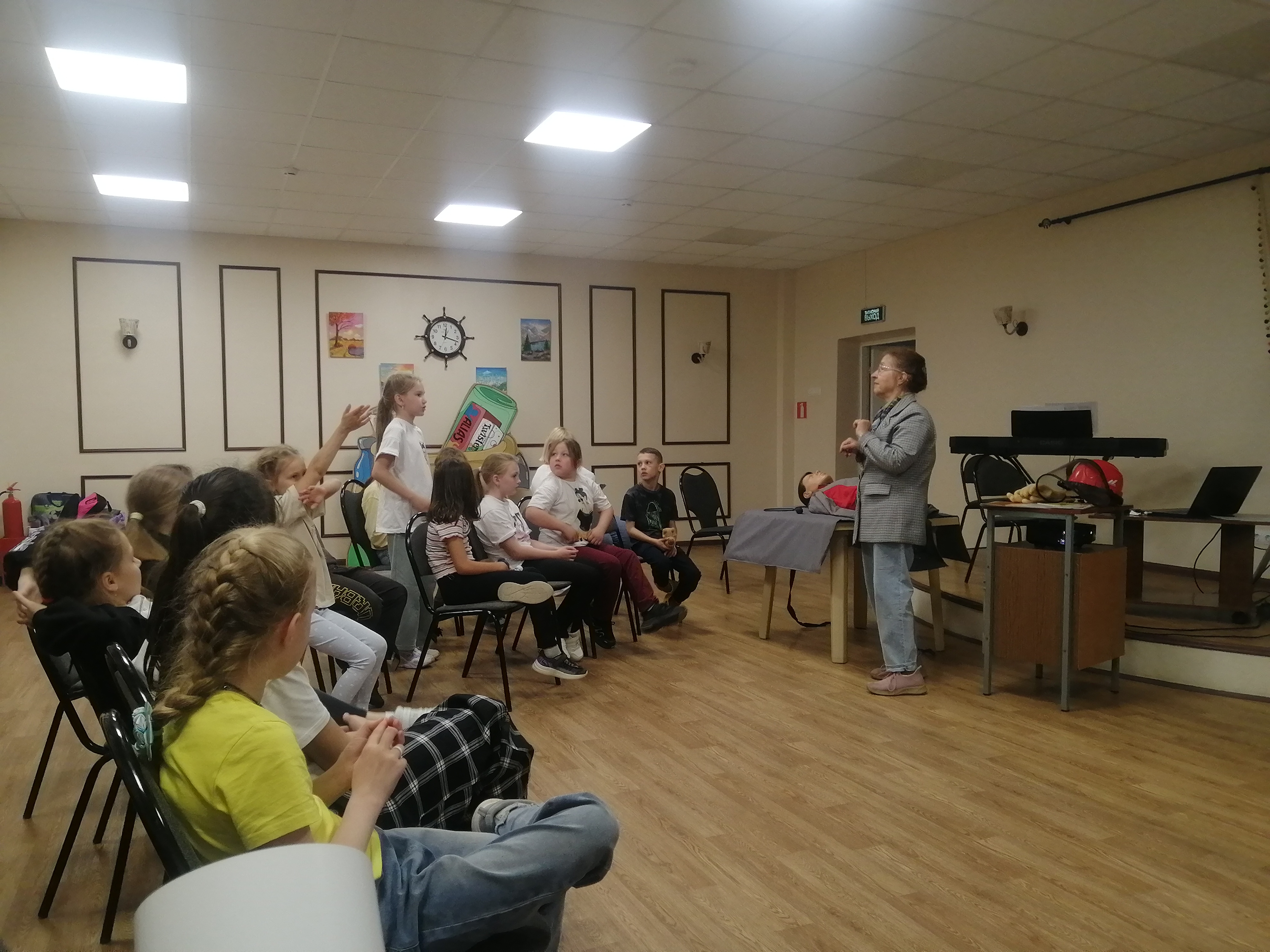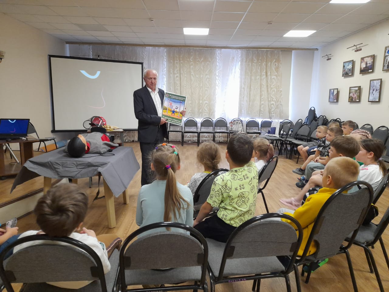 Для младших групп были показаны мультипликационные фильмы с «Фиксиками». Для старшей группы примеры из обзора травматизма с рассказами о случаях, произошедших с их сверстниками из-за небрежного отношения к электричеству. Объяснялось и состояние человека, попавшего под действие напряжения (обморок, коматозное состояние, состояние клинической смерти). На манекене-тренажере демонстрировались способы оказания доврачебной помощи. Самые смелые дети приглашались к манекену и самостоятельно проводили способы искусственного дыхания.