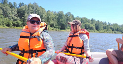 А обед нас порадовал вкуснейшей ухой, необычным салатом, воздушными оладышками и ароматным чаем. На острове все дружно купались, загорали, танцевали, и , конечно же, общались. Было весело. Корпоративный сплав – это отличный способ укрепить командный дух и зарядиться положительной энергией.